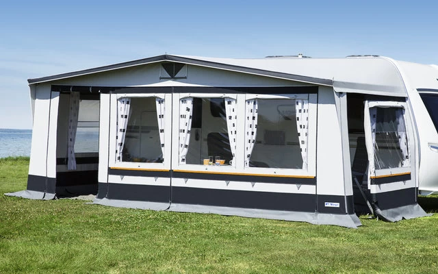 Ganzjahresvorzelt, 7-teilig. Zelttiefe: ca. 240 cm. Vordach: ca. 20 cm.