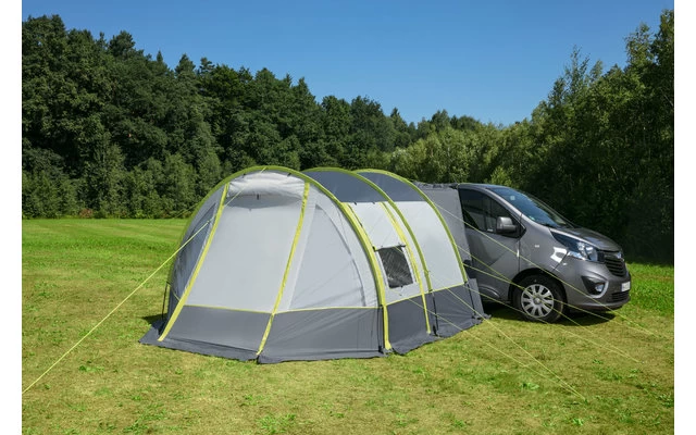 Das Zelt ist freistehend. Das Fahrzeug kann also problemlos weggefahren werden, ohne das Zelt abbauen zu müssen.