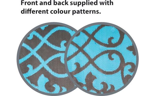Eine sehr stilvolle Outdoormatte . Auf beiden Seiten befinden sich ansprechende Motive, so dass der Teppich beidseitig genutzt werden kann. Dieser ist wasserdicht und eignet sich dadurch nicht nur als Picknickdecke sondern auch als Teppich. Hergestellt aus einem hochwertigen und leichten 100% Polypropylen 380 gr/m ². Darüber hinaus hat das Material einen UV-Schutz. Wird in einer praktischen Tragetasche geliefert.